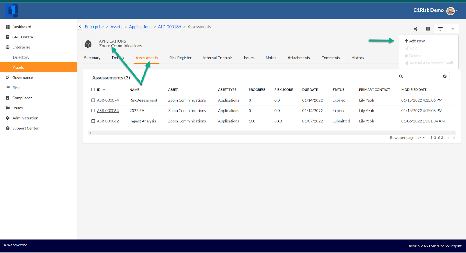 Once you have added your Assets, you can evaluate their impact on the business, and therefore determine and prioritize asset management according to asset value.