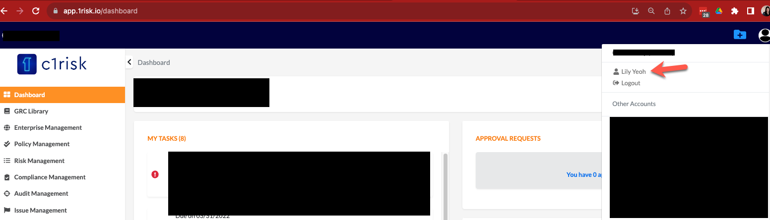 1. Go to the profile menu and select your name to access your user profile page.