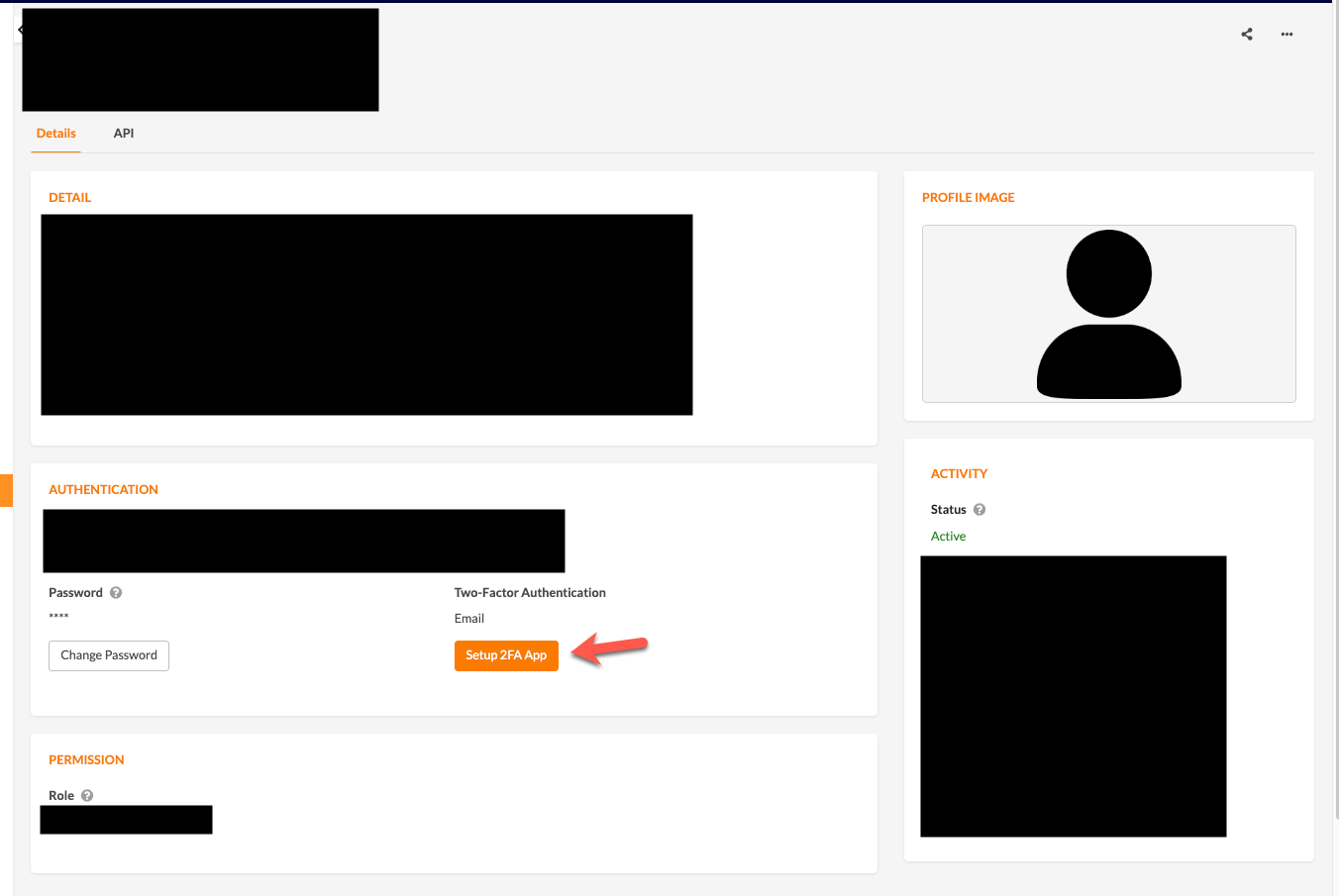 2. In the profile detail page, click on Setup 2FA App.